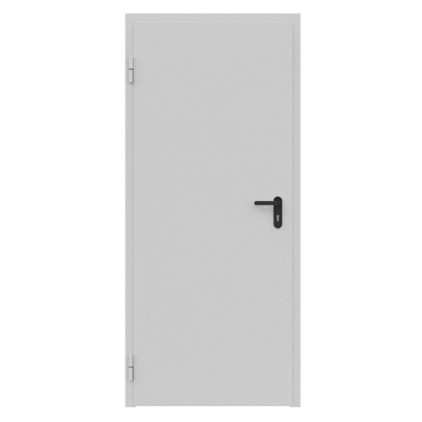 Противопожарная металлическая однопольная дверь ДПМ-01 EI 60 размером 2100x900 (ШxВ) устанавливается в любой проём внутри помещений, а также в качестве наружных дверей на входе/выходе из помещения.