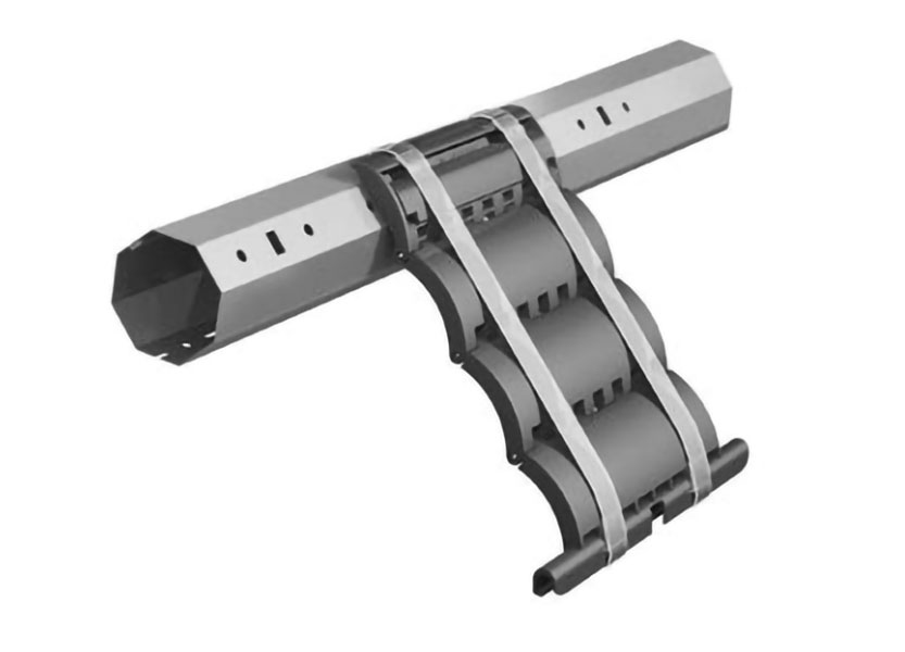 Ригель блокирующий RGM3/Q 3-секционный. Секции — полиамид, оси — нержавеющая сталь, пружины — пластик, применяется для подъема полотна и блокирования его в опущенном состоянии. Для роллет с массой полотна до 35 кг или электроприводом с крутящим моментом до 30 Nm. Для профилей AR/377, AR/39, AR/40, ARH/40, AR/41, AR/41/T, AR/45, AR/52, AR/555, AR/55m, AER44/S, AER44m/S, PD/39N, PD/45N, PD/55mN.